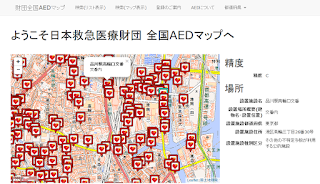 このニュースで知ったのですが、AED設置箇所を地図で表示するサイトができていたのですね。